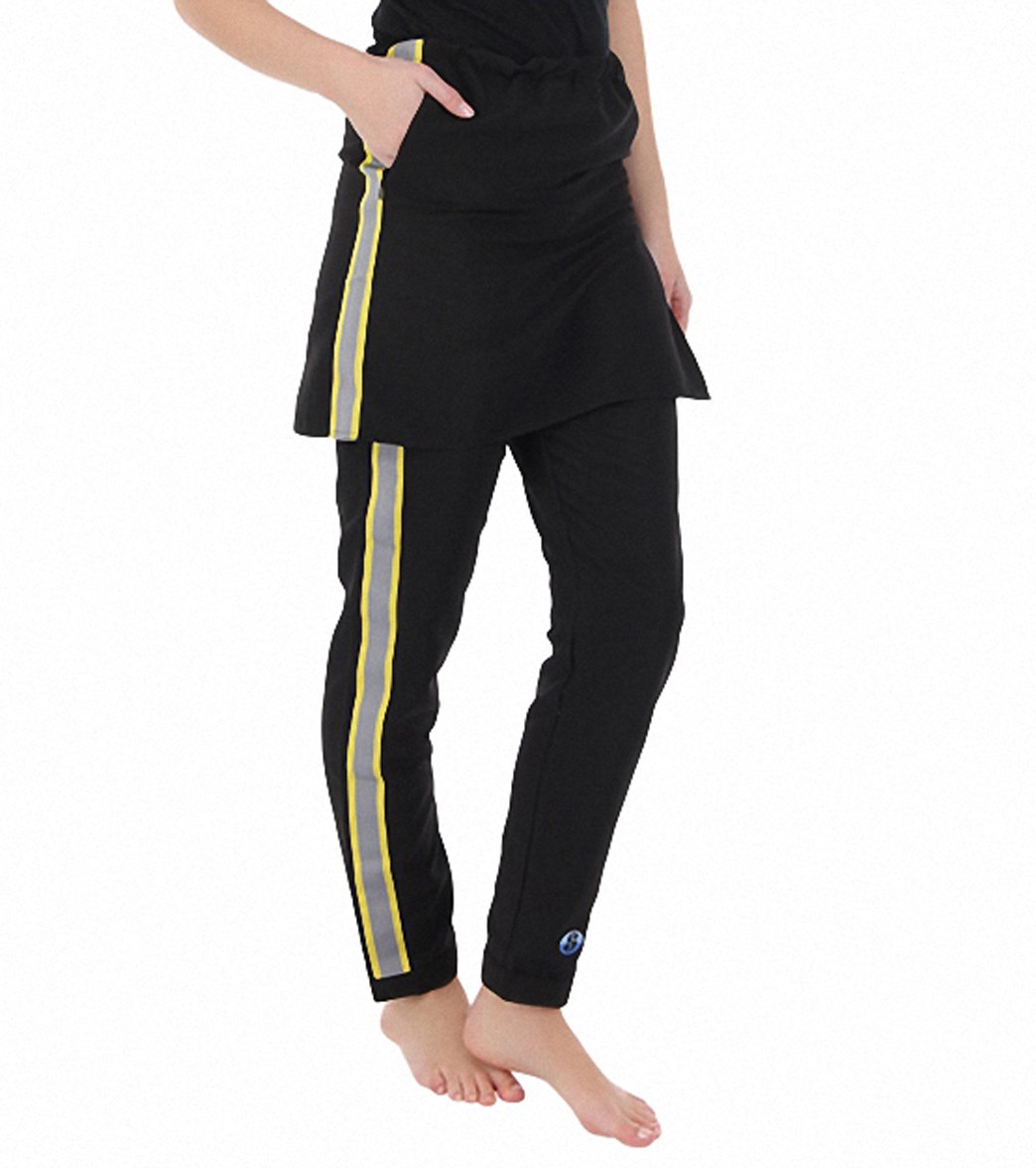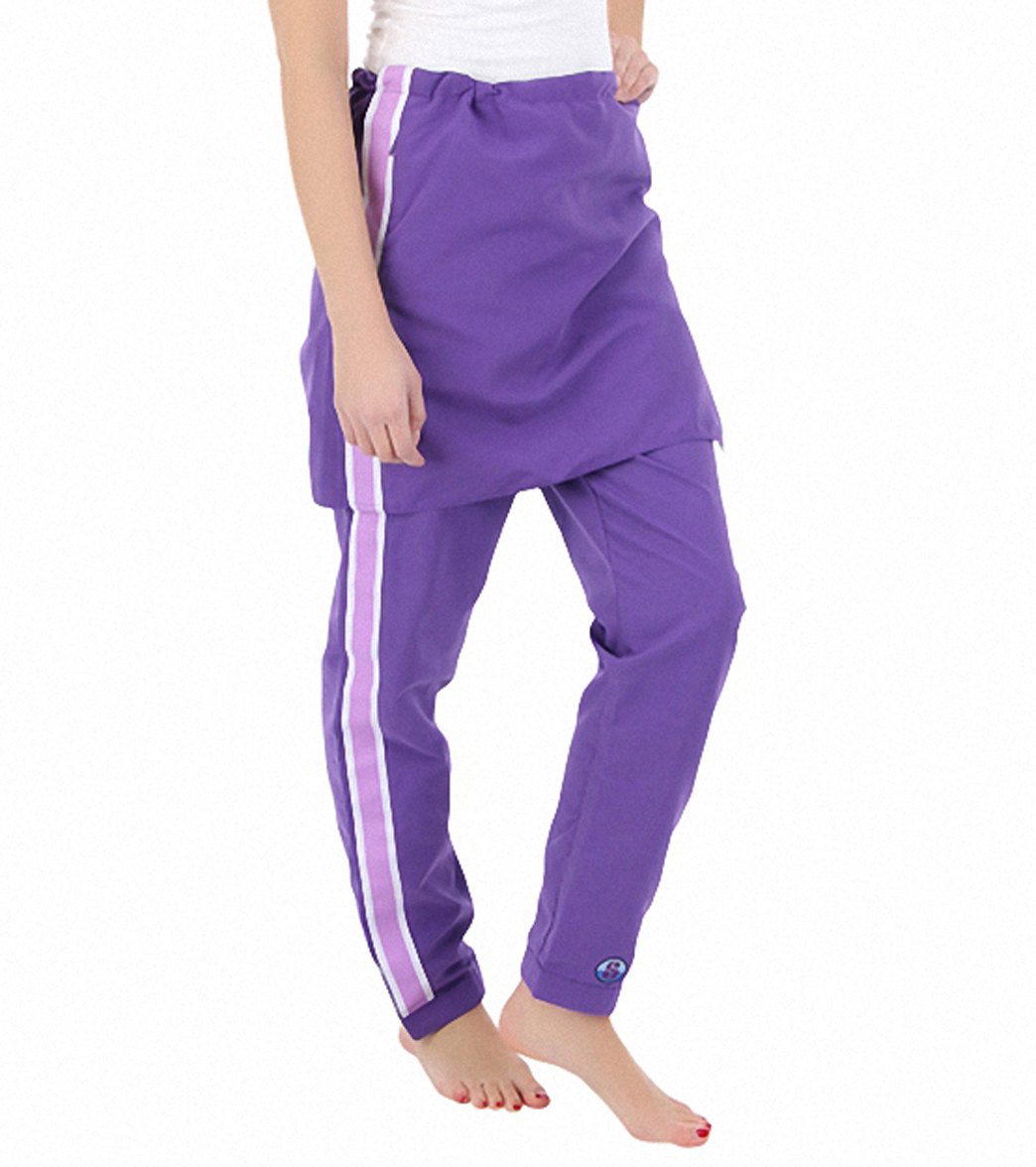 This La Femme Skirted Bottom reflects the feminine side by combing an A-line skirt attached to the sport pants. These bottoms provide full coverage. excellent modesty. and sit comfortably at the waist to provide freedom of foot motion during swimming.
