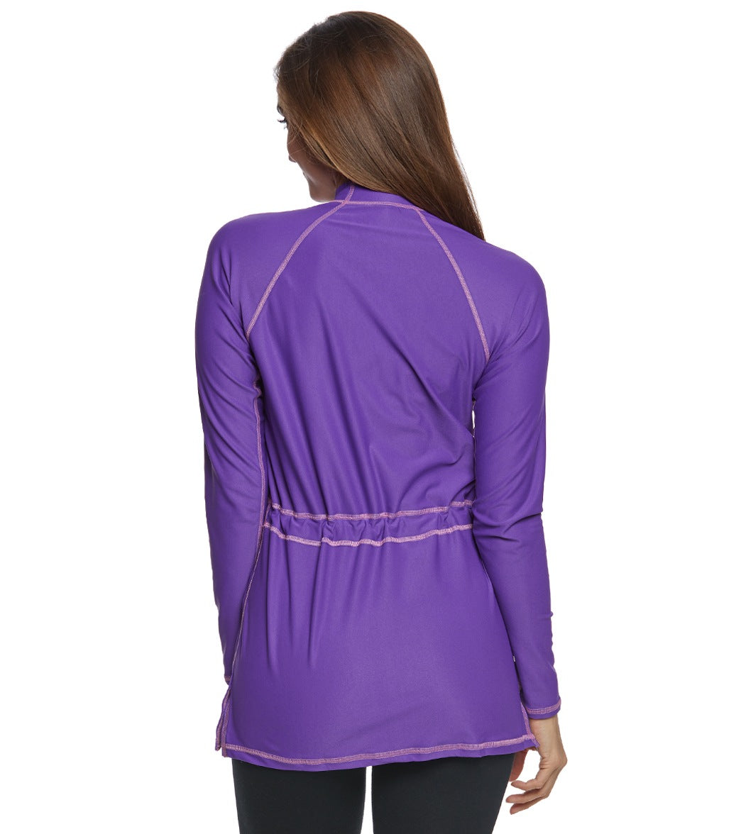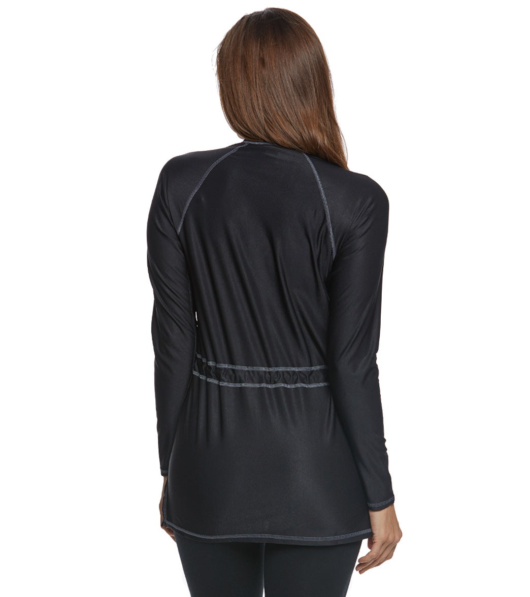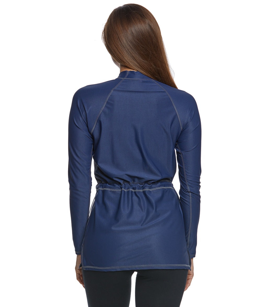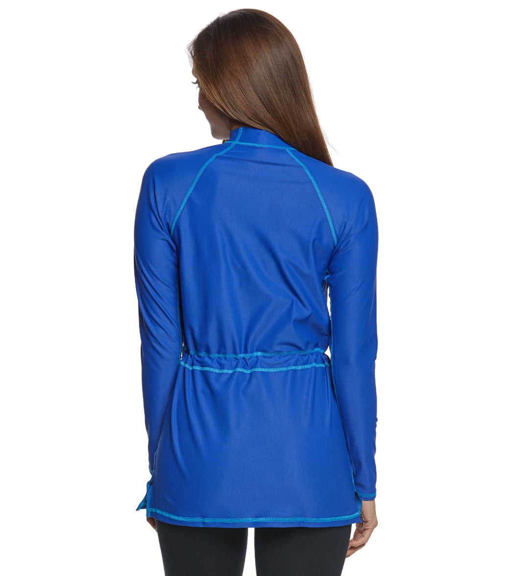 Perfect for in and out of water wear. the Resort Shirt top has a shock cord waist. which is tightened to prevent riding up in the water and loosened for a more modest look out of the water.