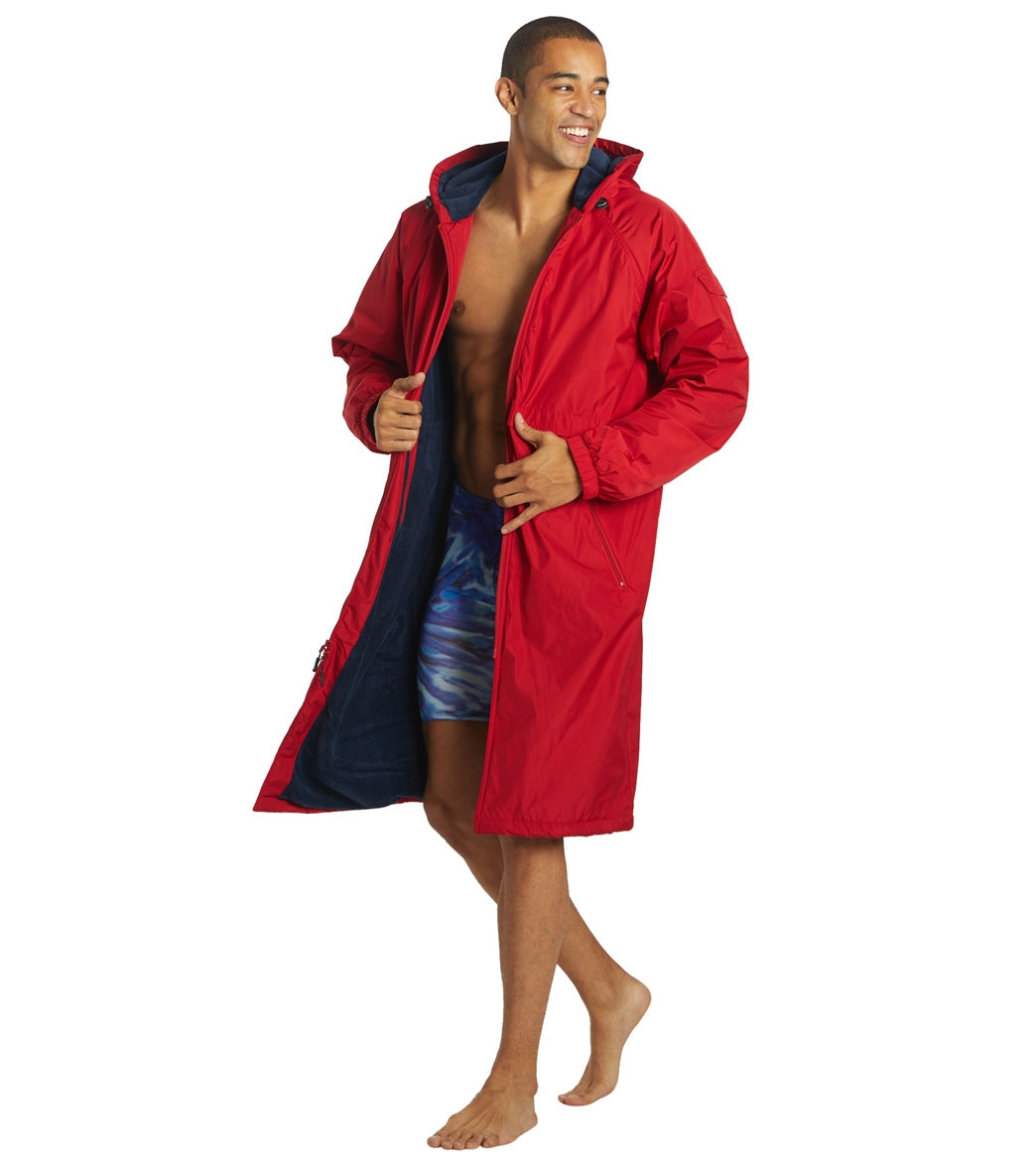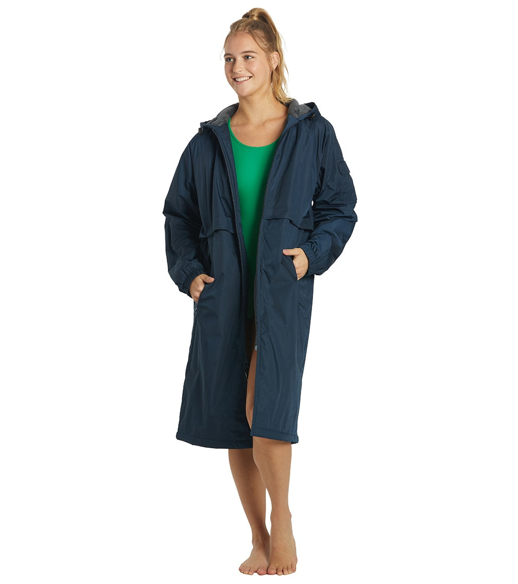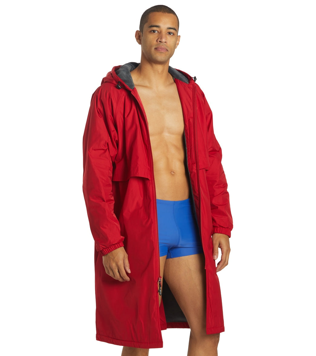 Stay warm and dry all season long in this cozy Sporti Comfort Fleece-Lined Swim Parka. The plush lining offers ultimate warmth and the water-resistant fabric repels water to keep you warm and dry on the coldest days. It features a large mesh vent with velcro closure for breathability. Multiple pockets offer a variety of storage options for caps. goggles and more! The large back panel is perfect to customize with your team logo!