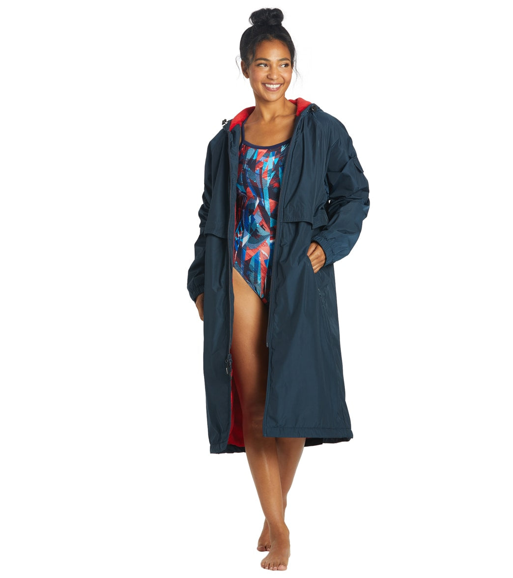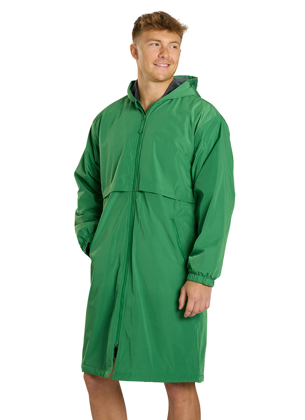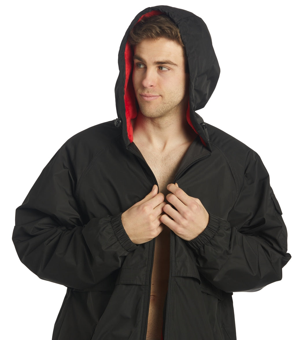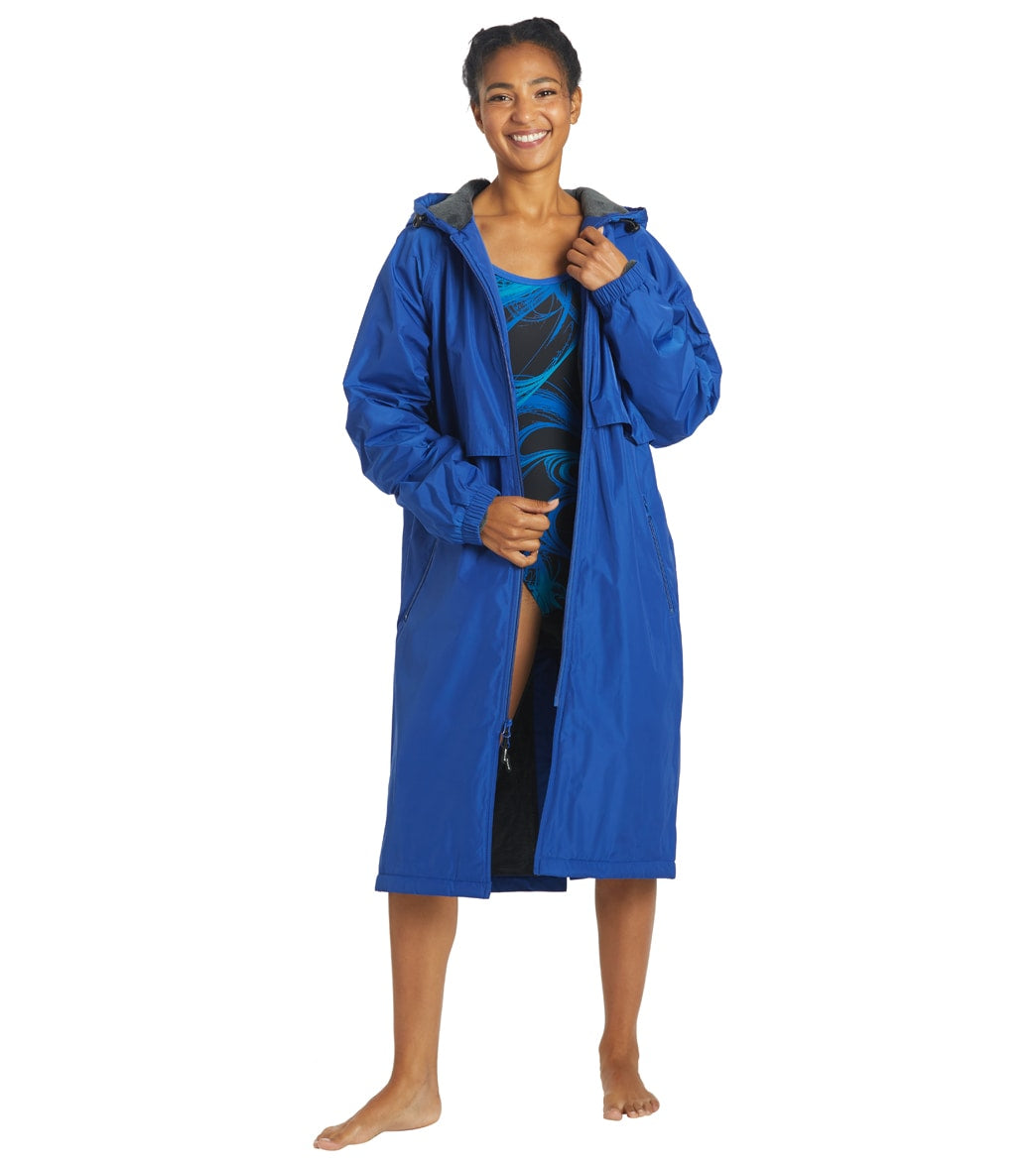 Stay warm and dry all season long in this cozy Sporti Comfort Fleece-Lined Swim Parka. The plush lining offers ultimate warmth and the water-resistant fabric repels water to keep you warm and dry on the coldest days. It features a large mesh vent with velcro closure for breathability. Multiple pockets offer a variety of storage options for caps. goggles and more! The large back panel is perfect to customize with your team logo!