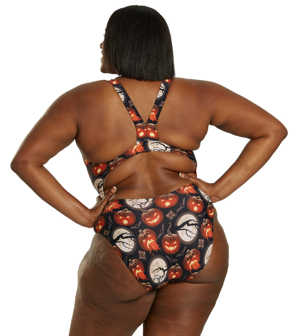 Dive into the Halloween spirit with the Sporti Fright Night Wide Strap One Piece Swimsuit (22-44). This swimsuit offers a secure fit with wide straps for added support. comfortable front and back lining. and flat seams to reduce chafing. The wide strap design provides excellent coverage and stability. Conquer the pool with a touch of Halloween magic in every stroke.