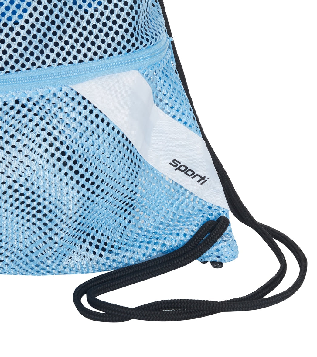 The Sporti Mesh Bag with Zipper Pocket is a great solution for storing your wet gear after a long swim practice or training session. A corner zipper pocket gives you added versatility while the mesh construction lets your wet gear dry quicker.