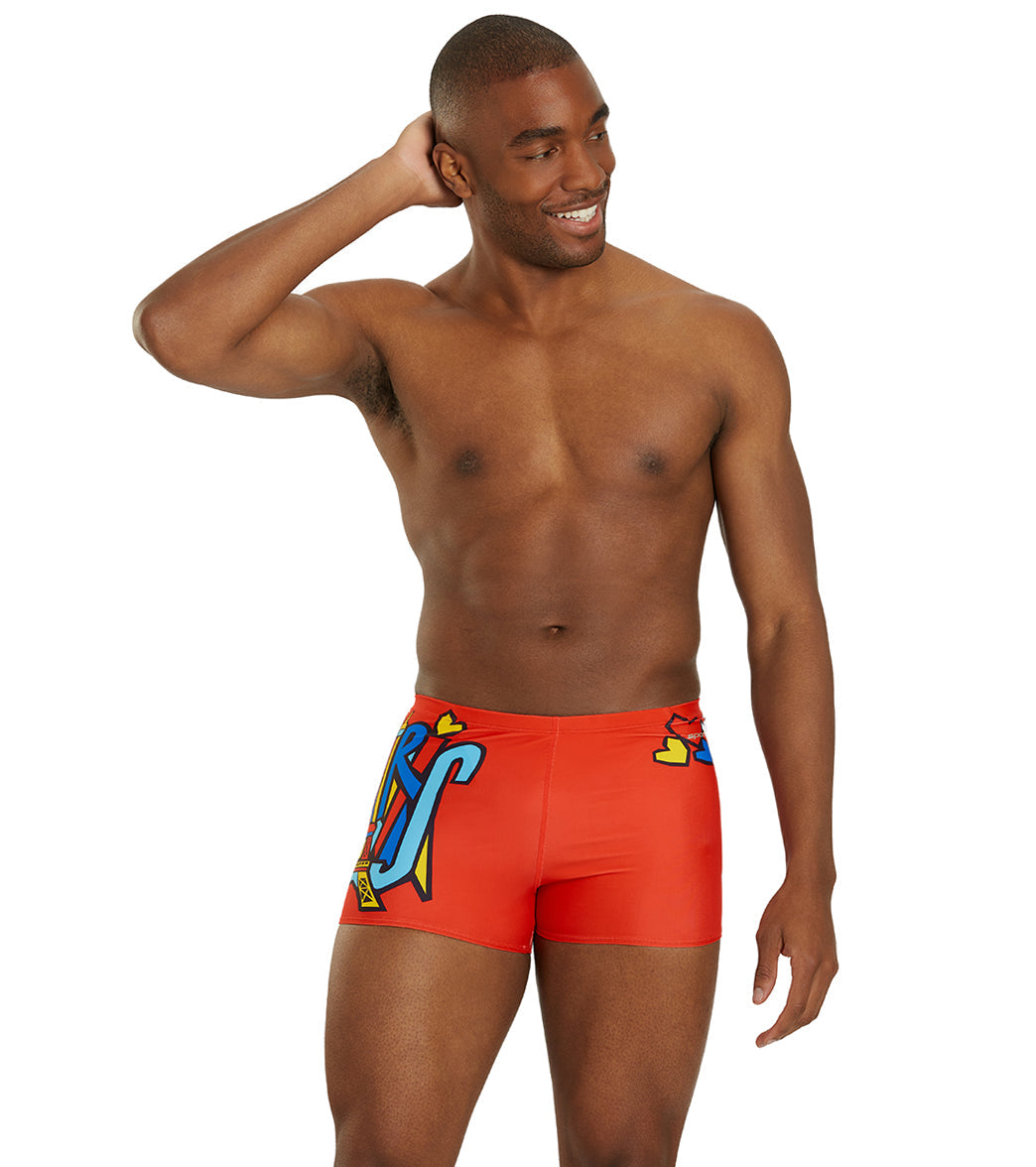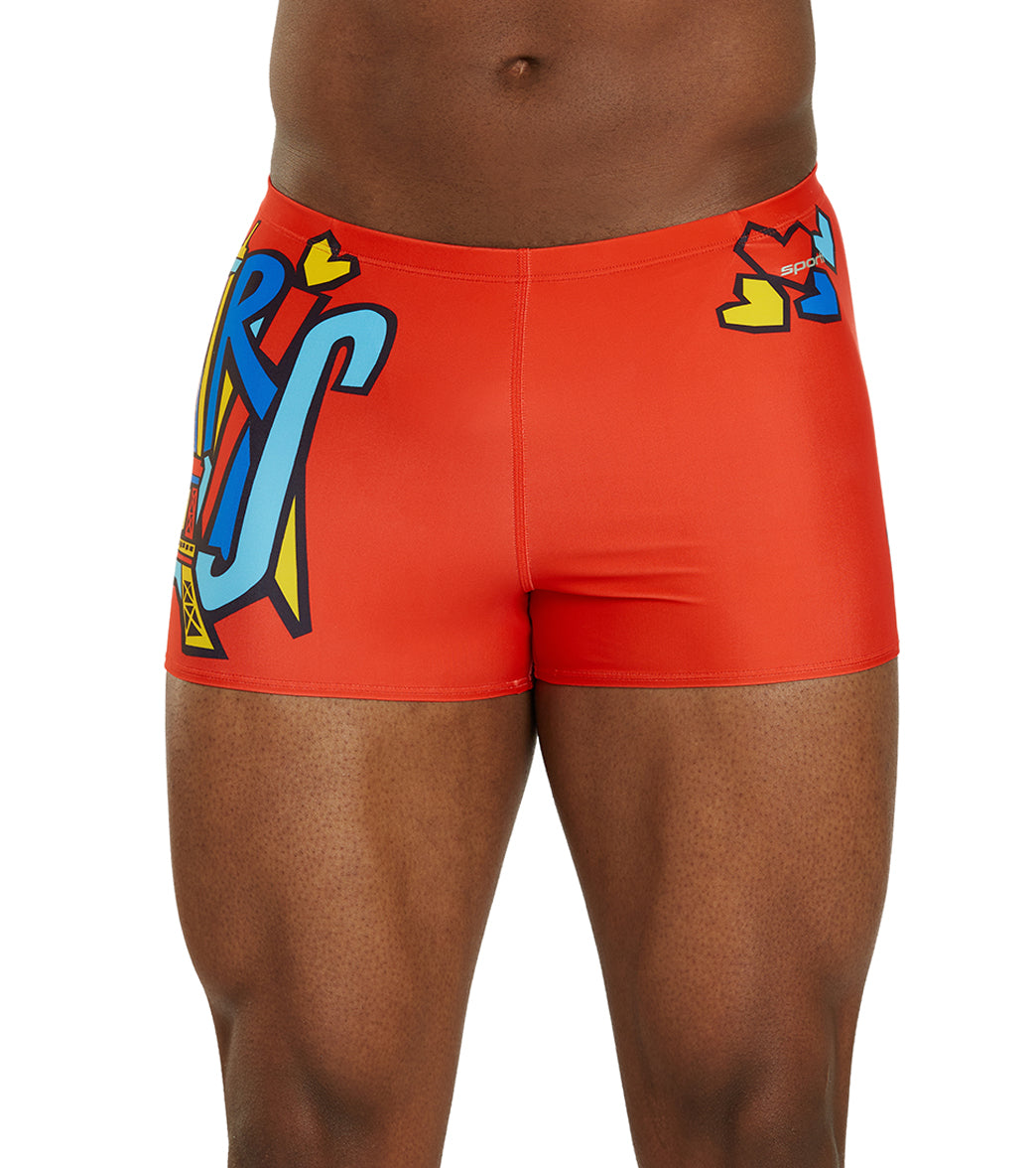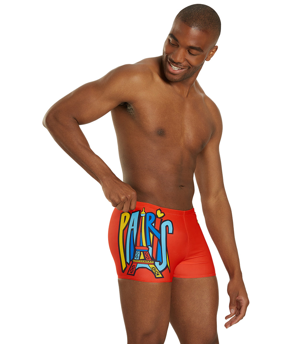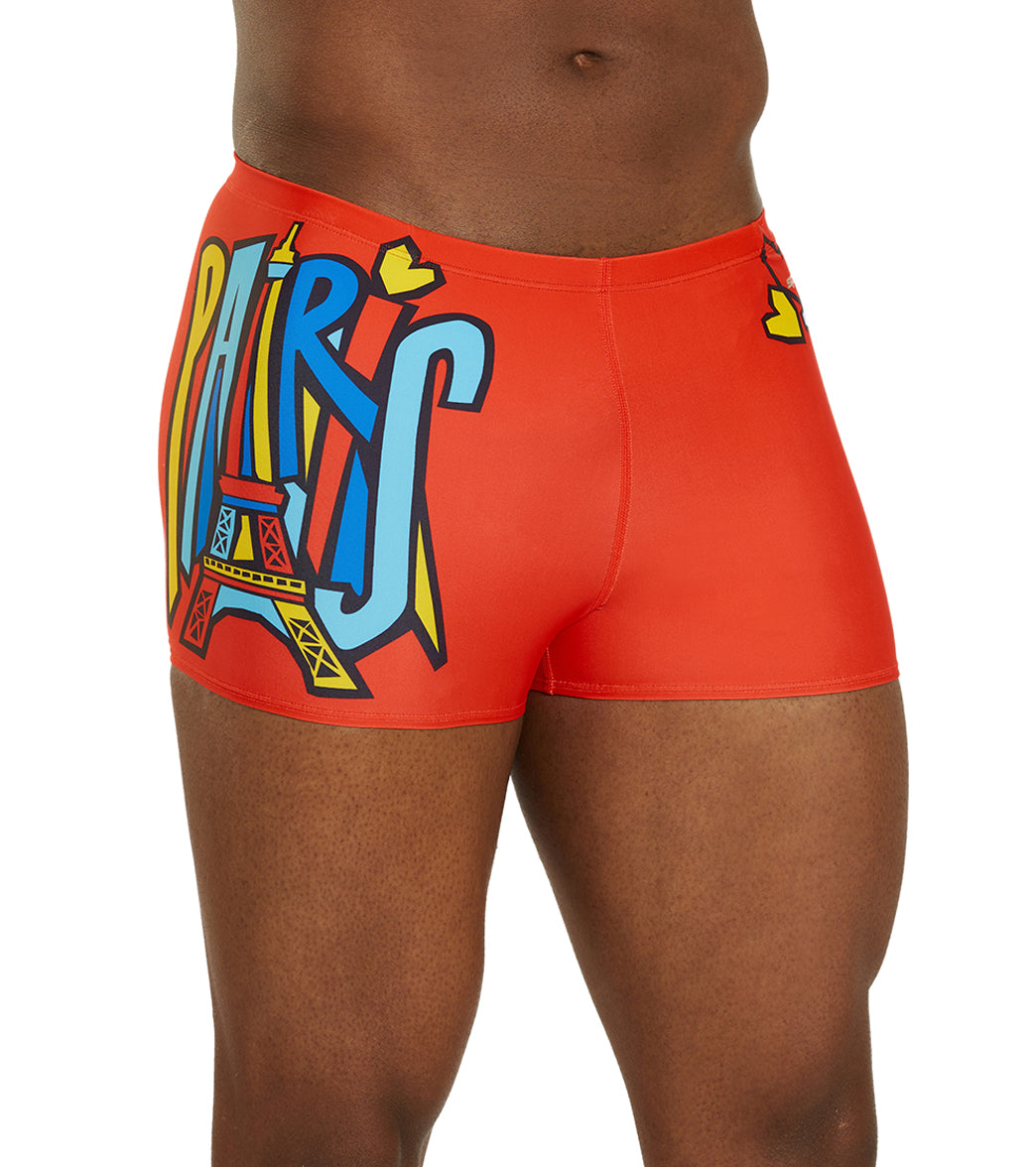 Step into the spotlight with the Sporti Paris Trend Setter Square Leg Swimsuit. Bold and energetic. this suit features "Paris" in fun. large pop art-esque lettering across a vibrant red background. capturing the city's fashionable and artistic spirit. The trendy square leg design offers enhanced support and style. making it perfect for those who lead in and out of the water.