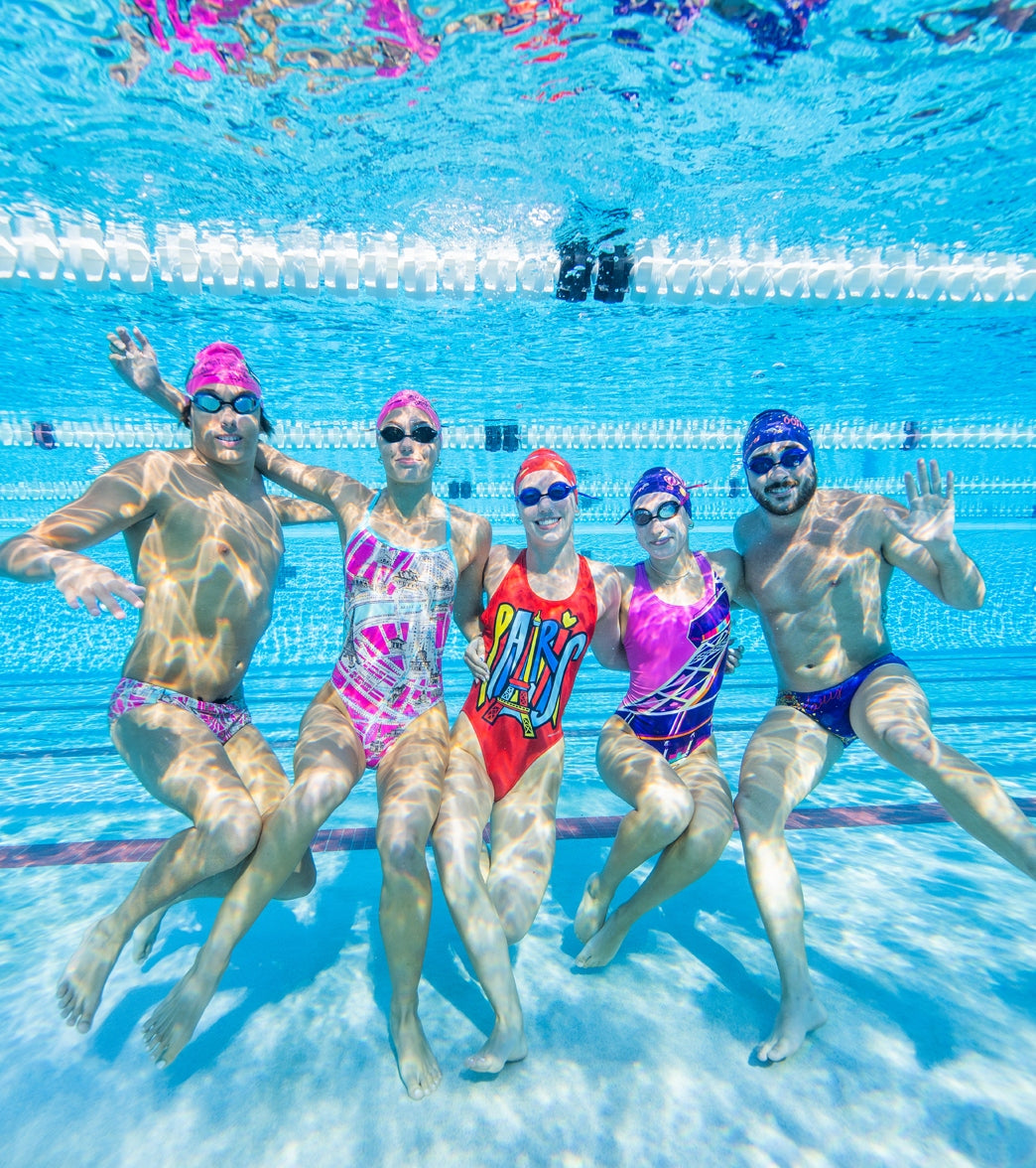 Step into the spotlight with the Sporti Paris Trend Setter Wide Strap Cross Back One Piece Swimsuit. Bold and energetic. this suit features "Paris" in fun. large pop art-esque lettering across a vibrant red background. capturing the city's fashionable and artistic spirit. The wide straps and cross-back design offer enhanced support and style. making it perfect for those who lead in and out of the water.