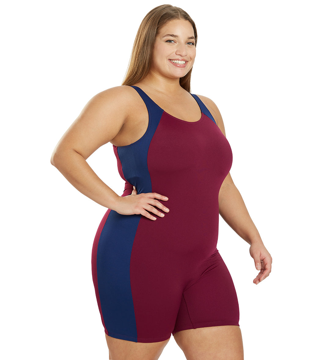 Sporti Plus Size HydroLast Chlorine Resistant Splice Scoop Back Unitard One Piece Swimsuit