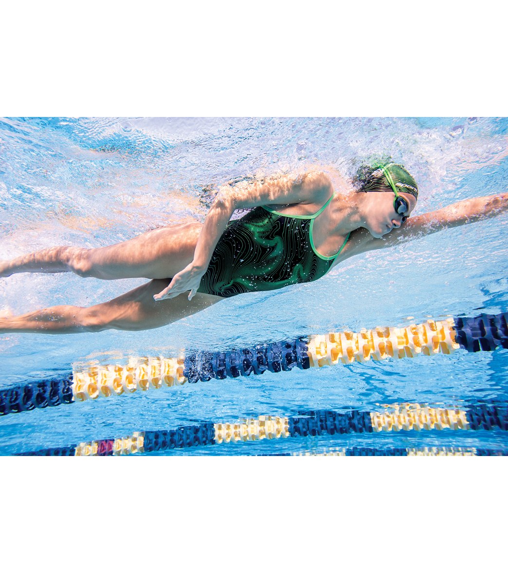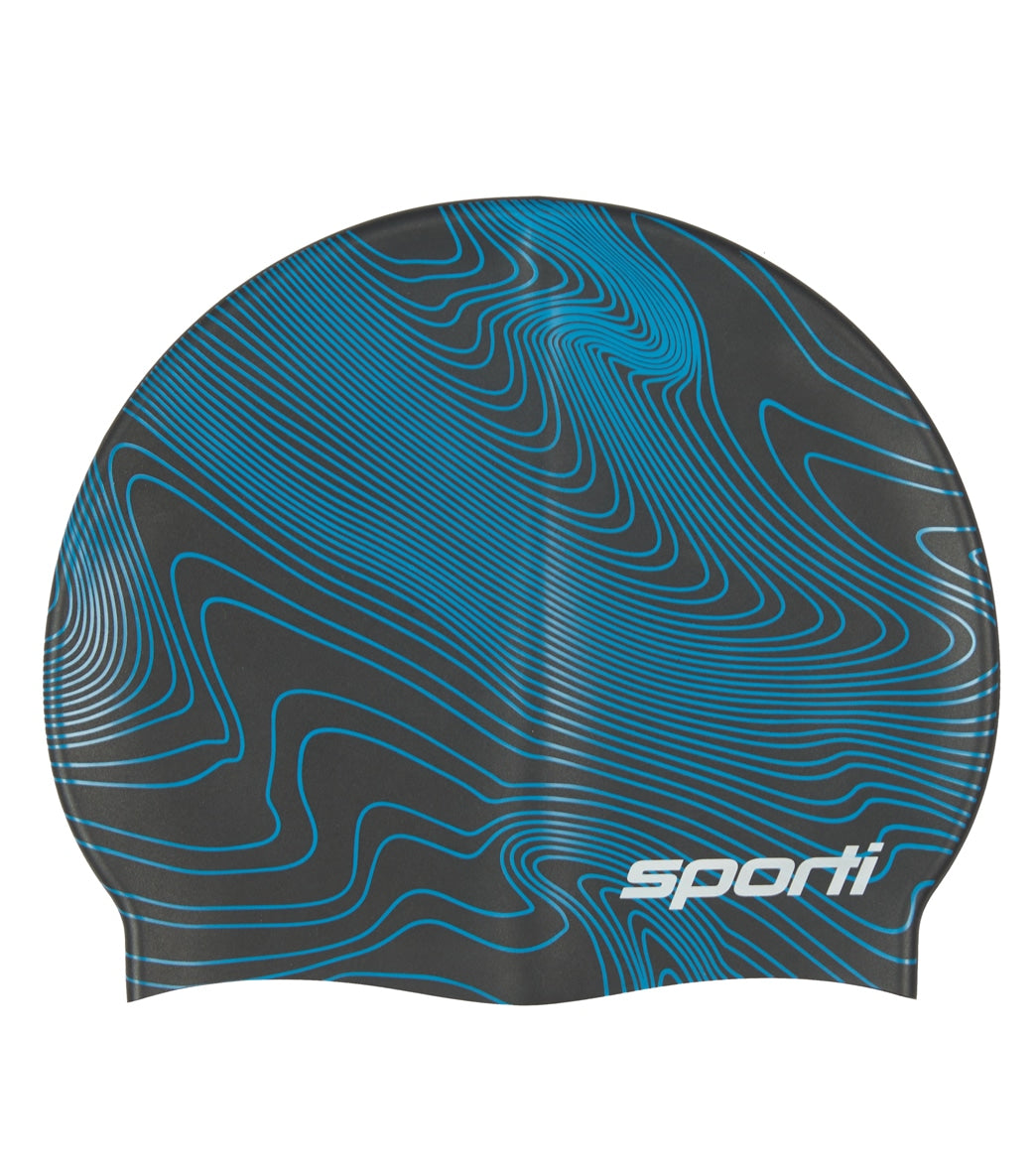 Make waves at your next practice in the Sporti Sonar Waves Silicone Swim Cap! With a streamlined shape to reduce drag and a snug fit to safeguard your hair from chlorine. this cap offers easy wear and removal. a non-slip grip. and ultimate comfort. Plus. it keeps your hair tangle free and helps your goggles stay put. Whether you wear it alone or pair it with a matching Sporti Sonar Waves swimsuit. this latex free. eye catching pattern will turn every swim into an exciting splash of color and comfort!
