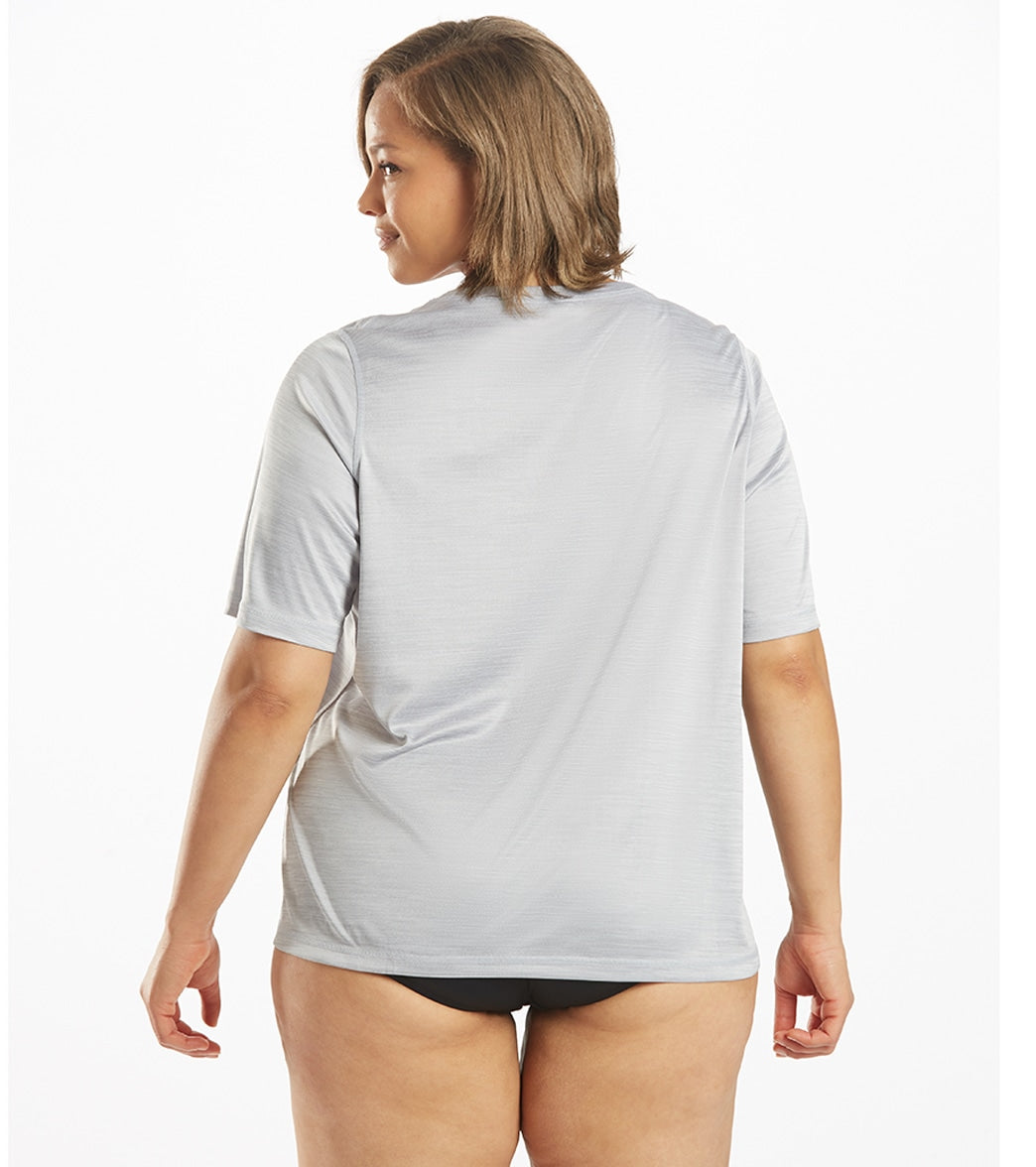 - Solid plus size women's short sleeve sun shirt.