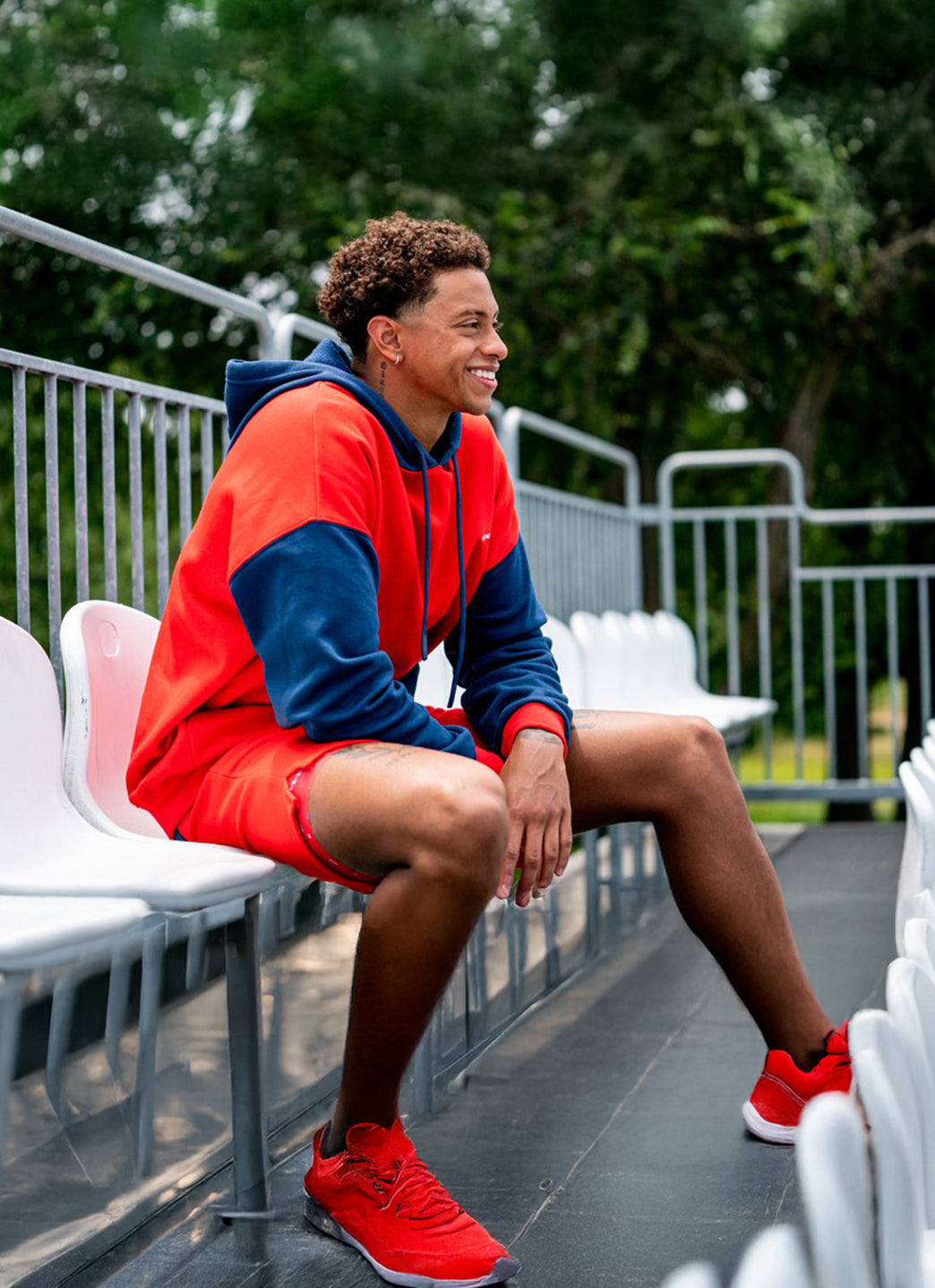 Shaine Casas is an 11x World Championship Medalist and 3x NCAA champion. His collection was inspired by the nostalgia of the 90s with retro prints and throwback designs.