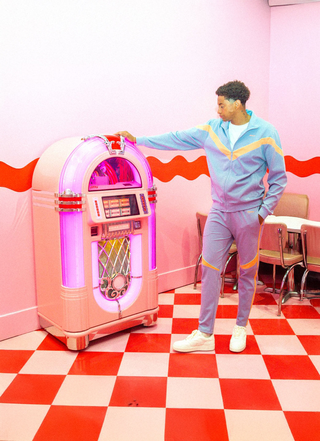 “Inspired by oversized windbreakers and iconic color blocking seen in the 1990s. the tracksuit is a modern. slimmer take on the classic. eye-catching look.â€?/em> - Shaine Casas