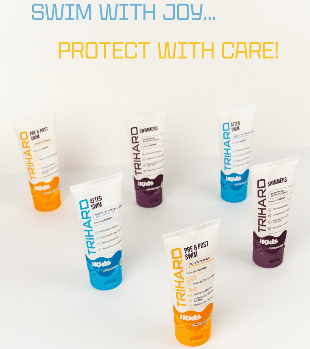 The kids' essentials for healthy. chlorine-free skin and hair. This three-pack offers a gentle and dermatologically-tested complete protection against chlorine and saltwater by reducing their absorption and eliminating them from skin and hair. It hydrates and restores. alleviates itchy skin and scalp. and is the ultimate kit for young water lovers.