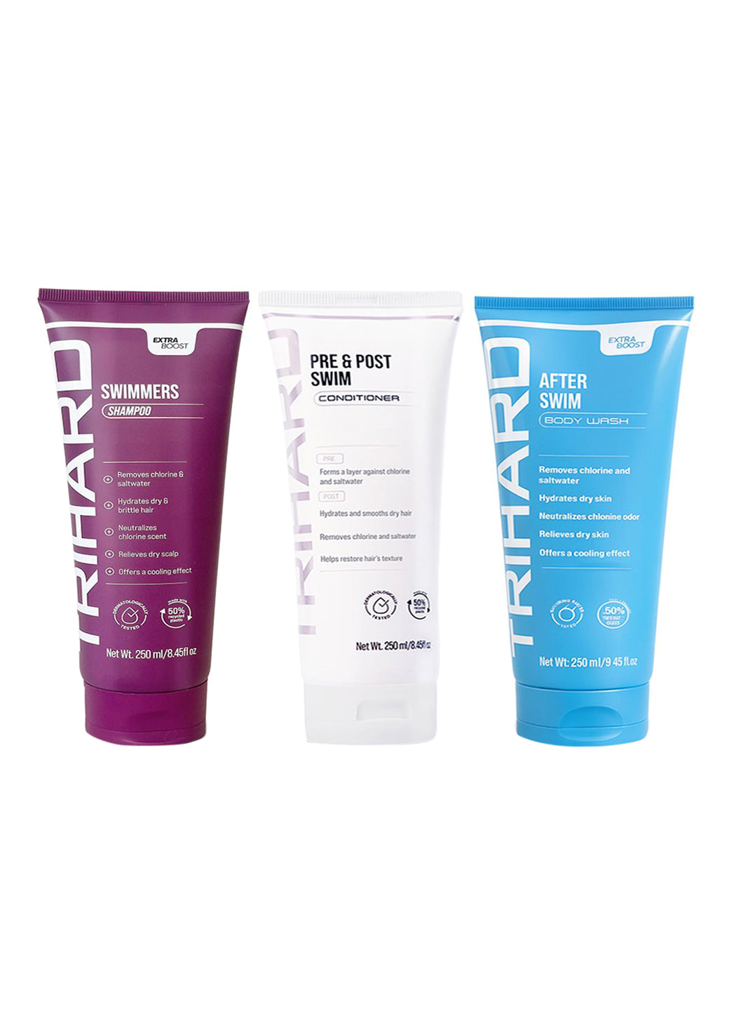 - Includes: Swimmers Shampoo Extra Boost + Pre & Post-Swim Conditioner + Body Wash Extra Boost