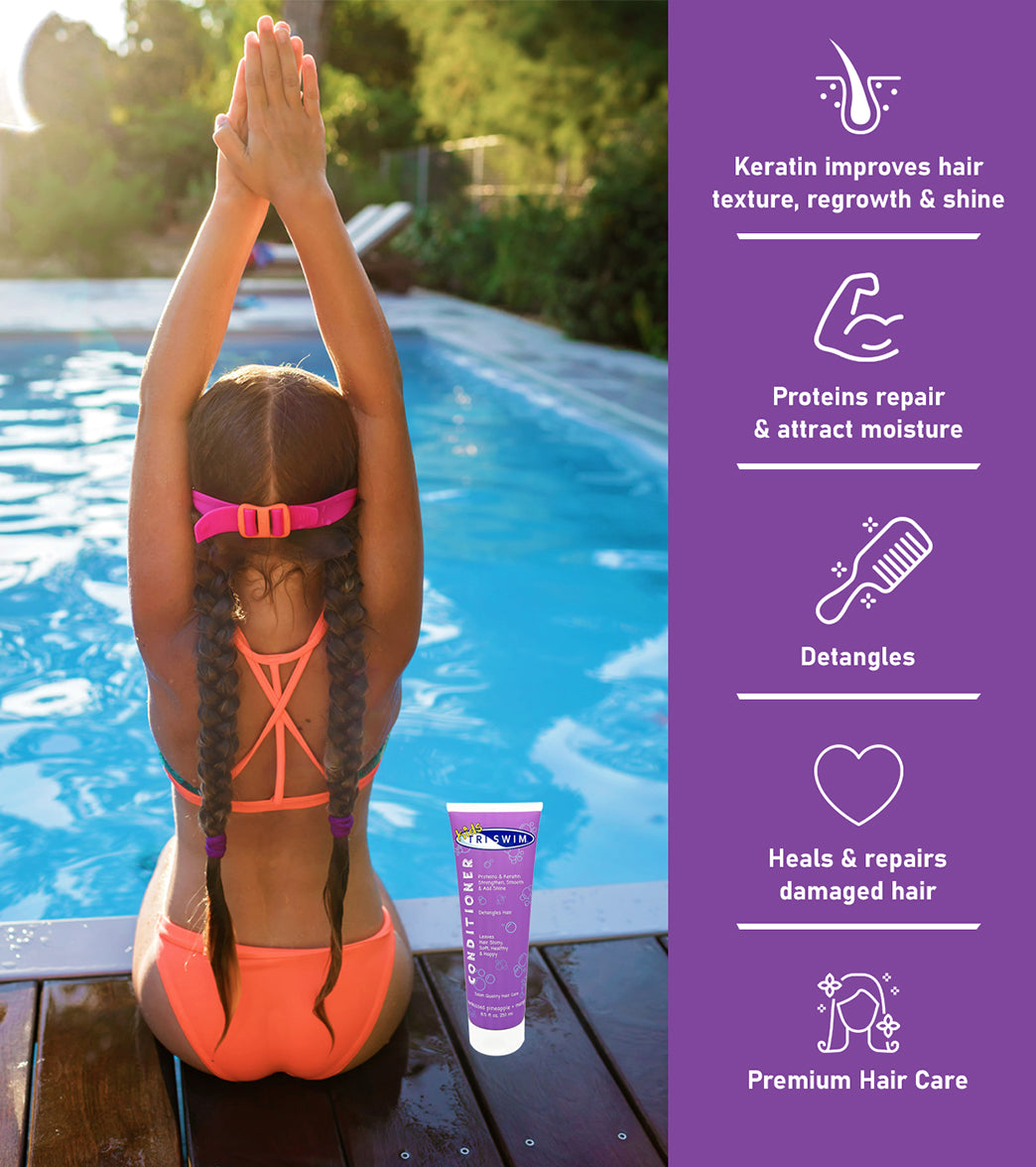 Condition and repair your child's swim damaged hair. TRISWIM KIDS Swimmer's Conditioner delivers proteins and Keratin in a salon-quality formula to rebuild soft and shiny hair. The light and refreshing Pineapple + Mango scent is one both you and your child will love. TRISWIM KIDS Conditioner is the #1 rated swim conditioner by United States Swimming Schools.