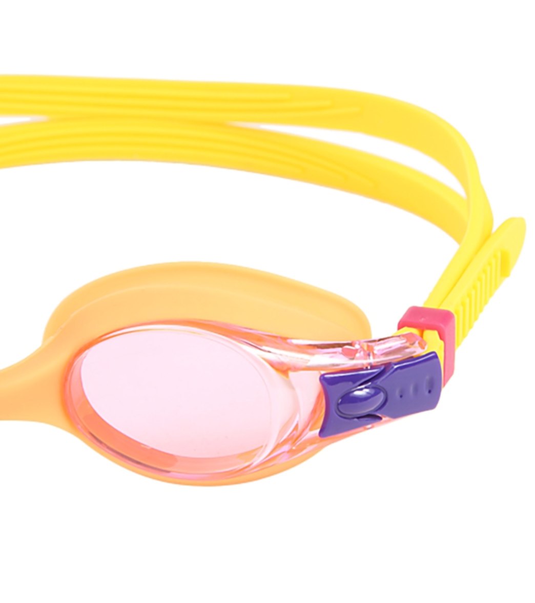The headstrap on the TYR Kids' Swimple Goggle adjusts by merely pressing down on the release button. holding down and pulling the strap through until you find the perfect fit. Swimply child's play.